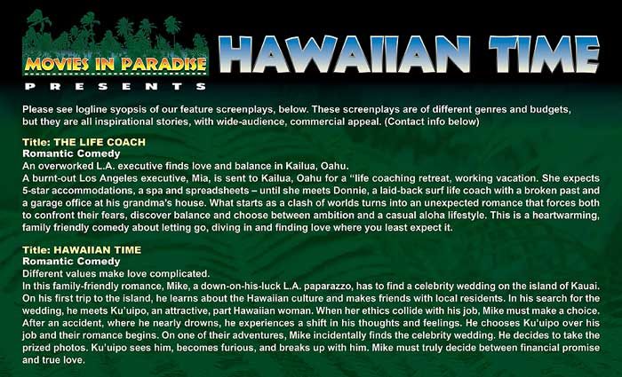 Hawaiian Time – Soon to be a cross-culture, romantic comedy feature film.